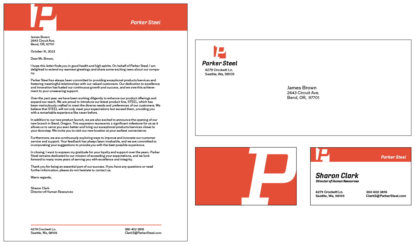With Parker Steel, I knew that they wanted a clean and modern look for their new brand. I also knew that they wanted to be seen as dependable and strong. In many of my early sketches, I found myself trying to be too literal and trying to include objects related to steel in the logo. I found that taking a step back and focusing on portraying the brand's values through aesthetics and feel would achieve a much more professional brand.
